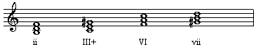 vii级和大调中的vii级一样。由于它们是建立在导音上,因此被称为:“导和弦”(或称导三和弦)。