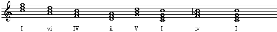 续,以增强终止的感觉。例如这样的和声进行:I-vi-IV-ii-V-I-iv-I。