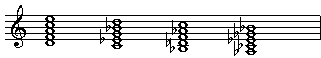 作业:把前面提到的所有和声公式都用原位和转位混合的形式改写,尽量避免平行八度和五度,然后把它们移 到至少四个升级号以下的各调上。
