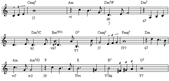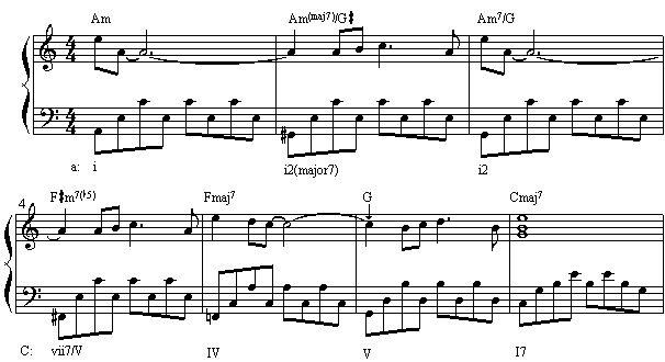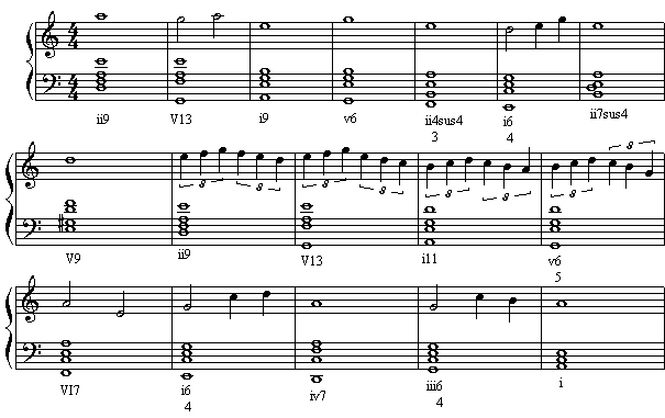 作业:把以前学过的和声公式,用七和弦和九和弦代替原来的三和弦,并即兴演奏。