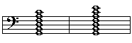 下面的例子中,把九和弦分成上下两个三和弦。