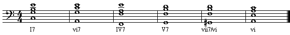 加上一个vi级的属和弦,可以使进行更加顺畅。