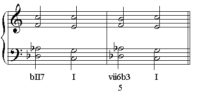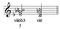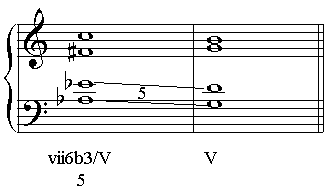 当用重属导和弦代替重属和弦时,5音就变成了3音。(这个进行中的平行五度是不可避免的,被称为莫扎特平行