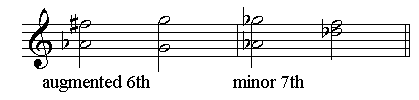六度是向外解决,小七度是向内解决。(一般来说,所有增音程都是向外解决,而减音程都是向内解决。)